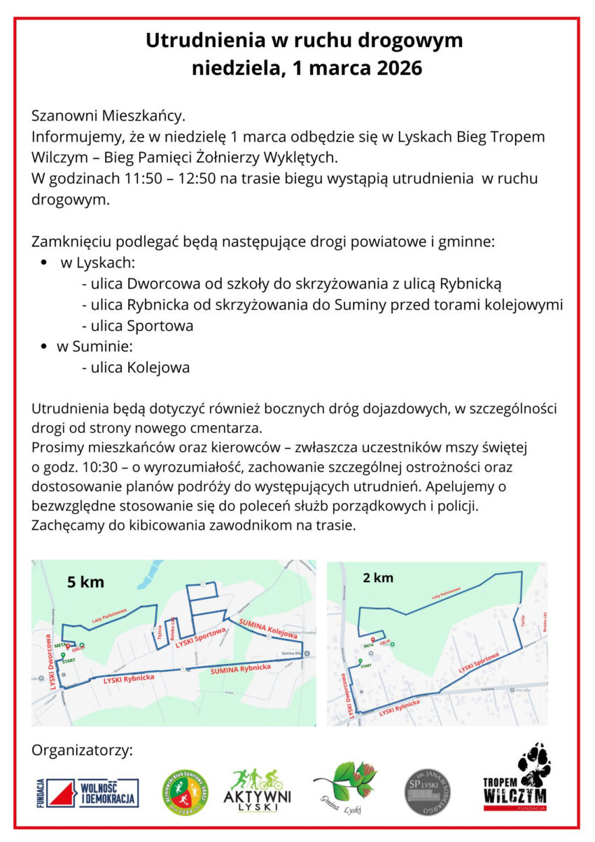 Utrudnienia w ruchu drogowym w niedzielę 1 marca 2025