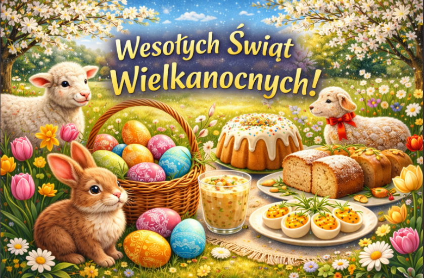 Z okazji Świąt Wielkanocnych życzymy Wam, żeby jajka zawsze wychodziły idealnie na twardo (albo miękko – zależy od preferencji 😉), mazurki nie znikały w tajemniczych okolicznościach, a babka rosła jak na drożdżach – i to bez stresu, że „czy się uda” 😄